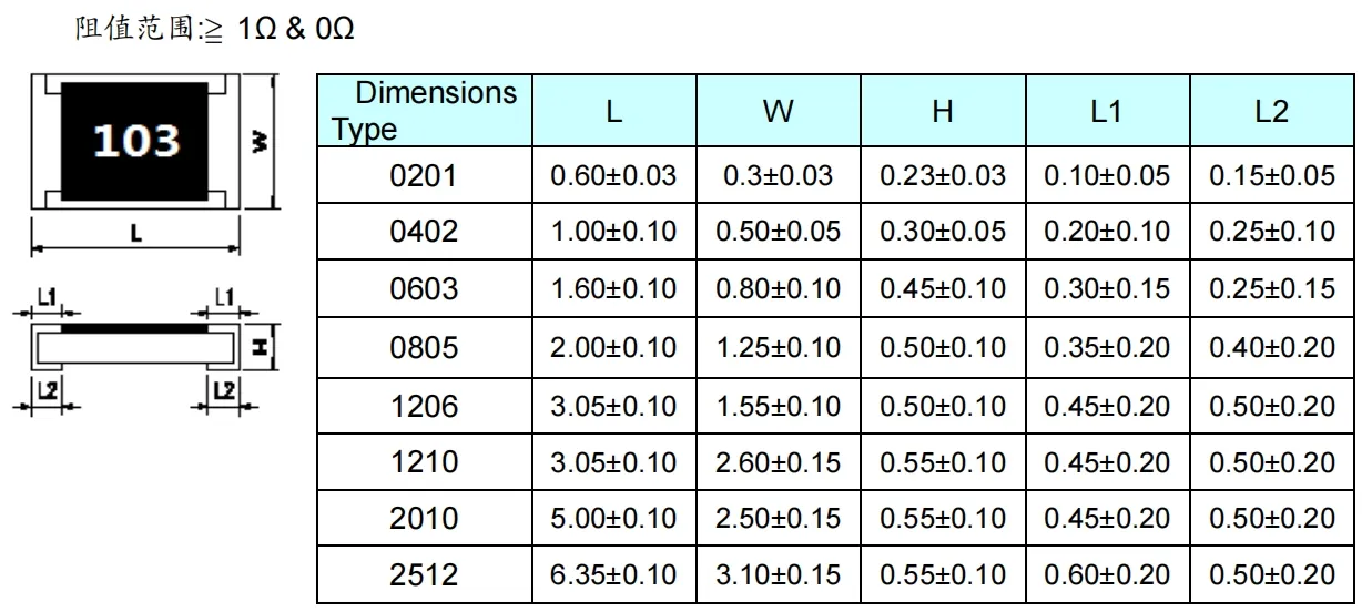 Resistance range | JUMPER (0Ω) |